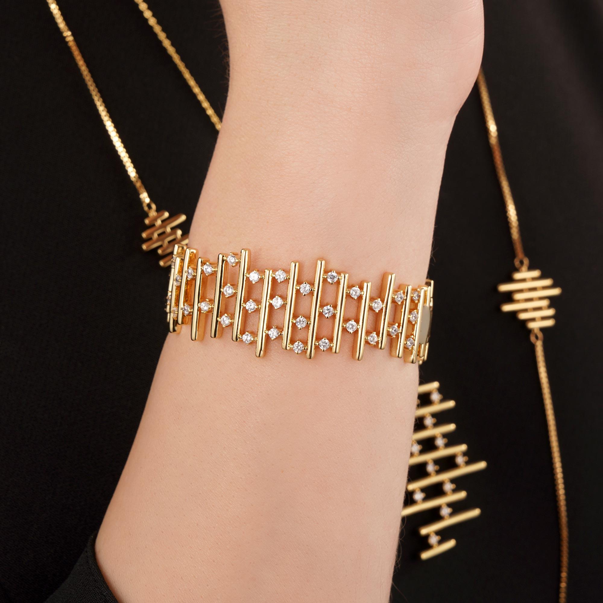 انغمسي في عالم الأناقة الراقية التي تلتقي الخطوط النحاسية المتدرجة بانسيابية ساحرة لتتراقص أحجار الزيركون اللامعة بين التفاصيل كقطرات ضوء متألقة